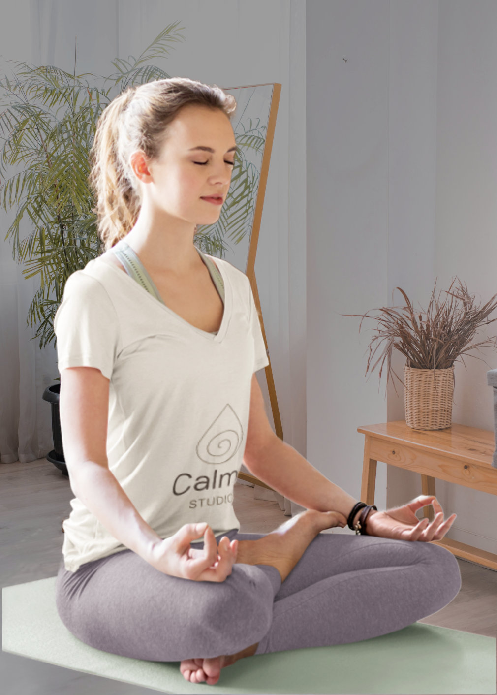 L’ensemble suggère une énergie douce et recentrée, parfaitement en accord avec l’univers du yoga, de la relaxation et du retour à soi.