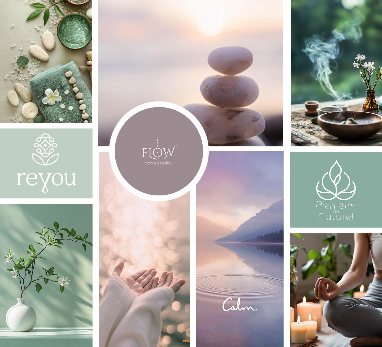 Cette identité visuelle exprime les valeurs fondamentales du studio : calme, légèreté, nature, respiration et équilibre intérieur.