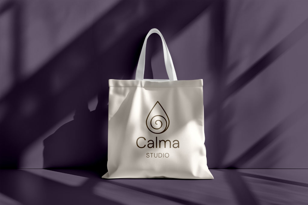 Le logo de Calma Studio combine une goutte d’eau stylisée et une spirale centrale, formant un symbole fort, à la fois fluide et introspectif.